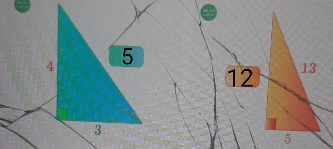 13^2- 5^2=169-25=144 катет равен 12(это оранжевый треугольник)