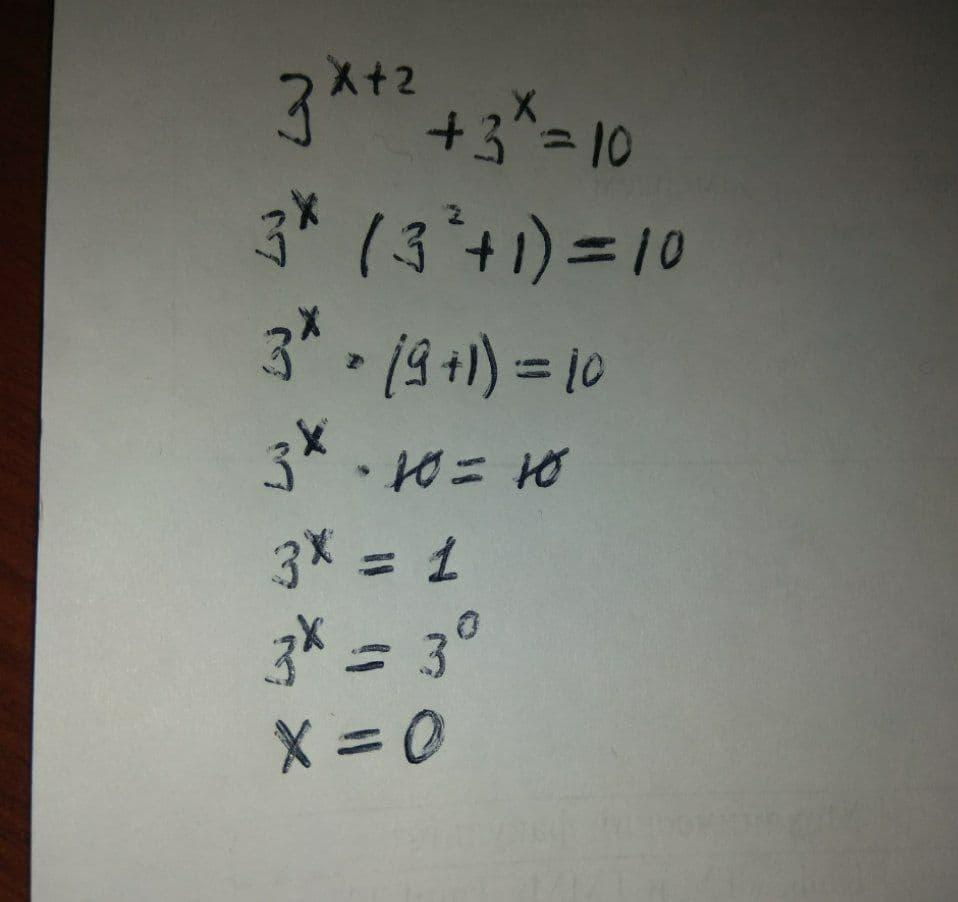 А почему при выносе 3^x за скобку, у тебя осталось 3^2 ?