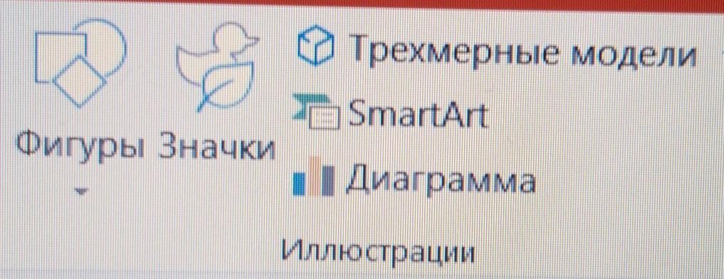 Название обьектов,которые можно вставить в слайд в группе Иллюстрации: