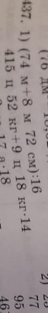 1) (74 м + 8м 72 см) :16= 82 м 72 см :16=5 м 17 см