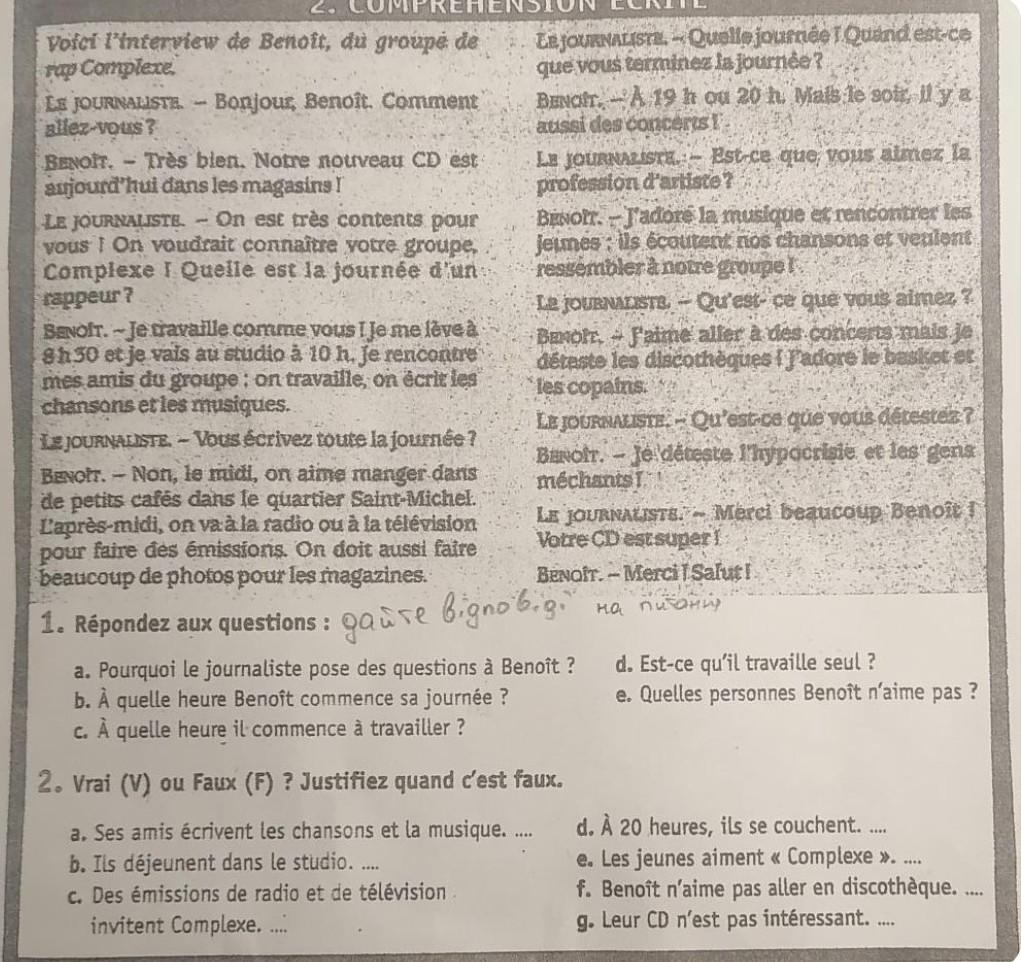 1 a Le journaliste lui pose des questions parce que son nouveau CD vient de sortir.