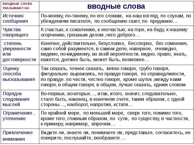 на пешите пж 10 вводных слов
