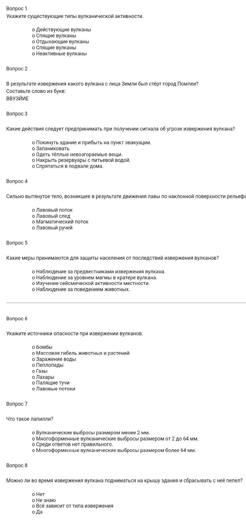 6 бомбы, пеплопады, лавовые потоки, палящие тучи