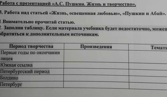 Ответ: первые годы .......1) Произведения: К этому периоду относятся стихотворения "Вольность" (1817), , "Деревня" (1819), "На Аракчеева" (1817‑1820), которые, хоть и не публиковались, были широко известны. Еще до окончания лицея, в 1817 году, начал писать поэму "Руслан и Людмила", которую закончил в марте 1820 года.