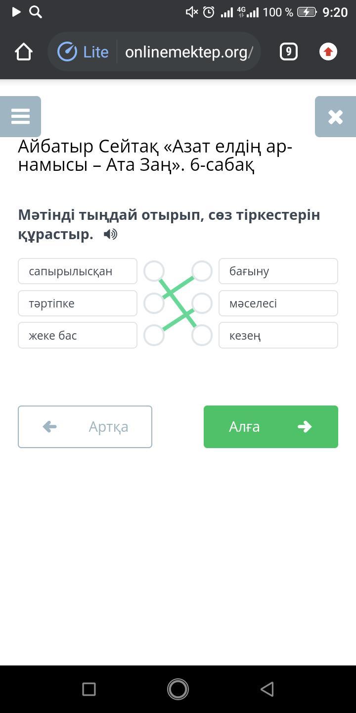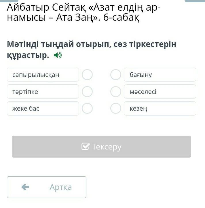 Мәтінді тыңдай отырып, сөз тіркестерін құрастыр.