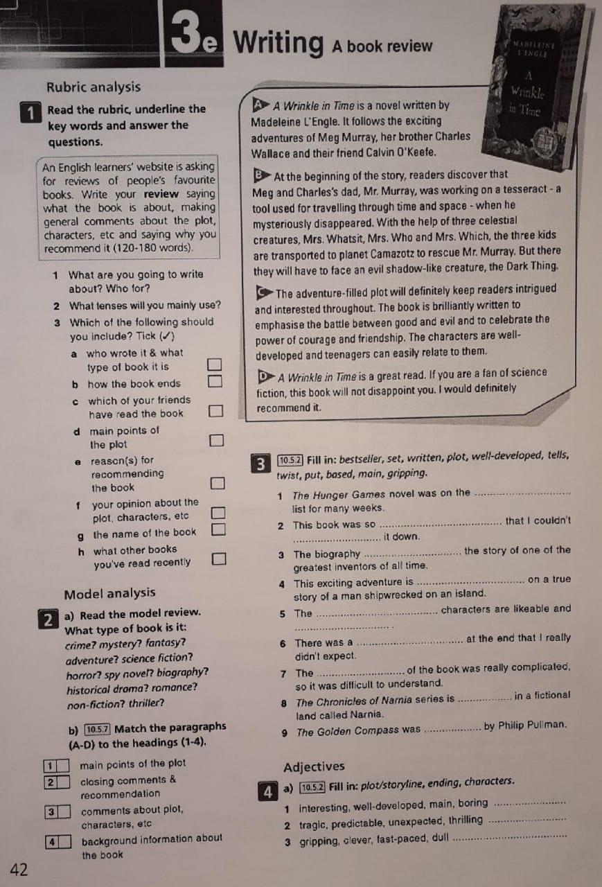 3. 1. besteller 2. gripping, put 3. tells 4. based 5. main, well-developed 6. twist 7. plot 8. set 9. written