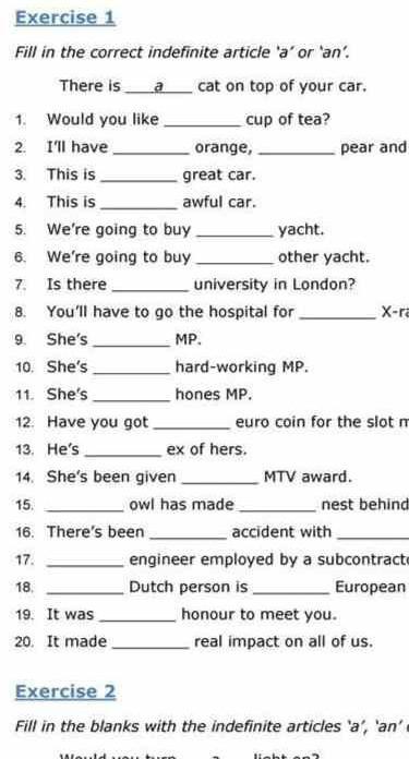 fill in the correct indefinite article a or an