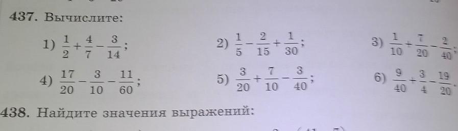4)17/20-3/10-11/60=11/30 5)3/20+7/10-3/40=31/40 6)9/40+3/4-19/20=1/40