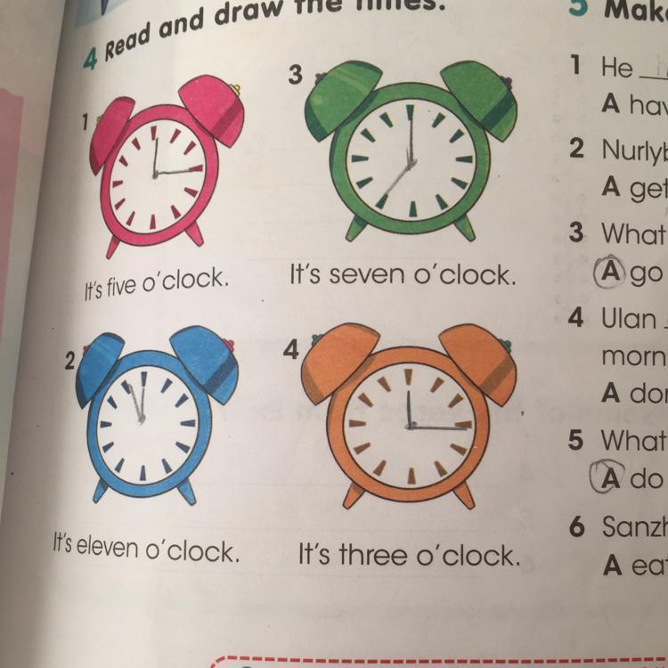 Нарисуйте 5:00, 7:00, 11:00,3:00