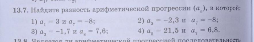 1) а₁ = З и a₇= -8; (7-1=6) 6д=-8-3=-11 д=-1 5/6