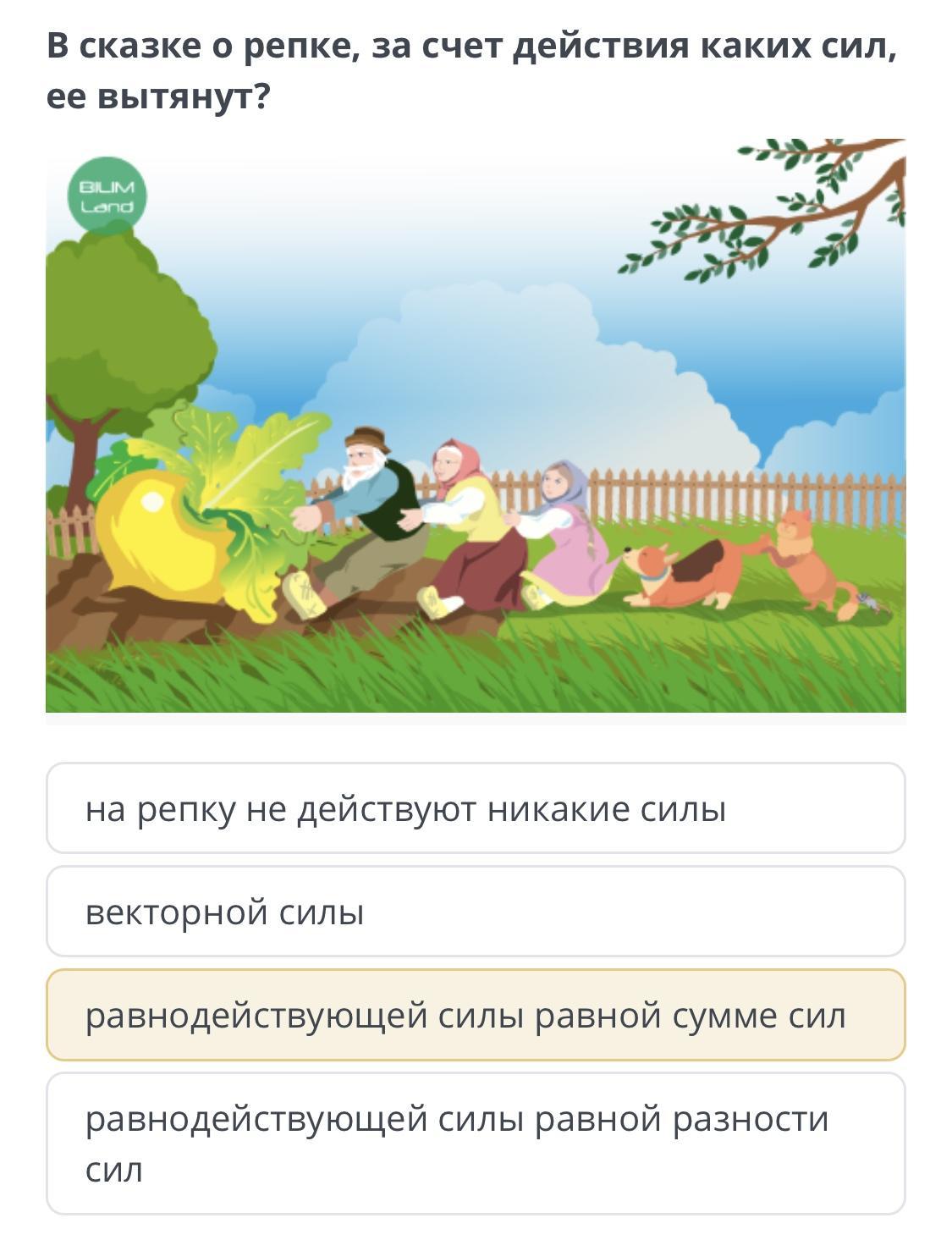 В сказке о репке, за счет действия каких сил, ее вытянут?