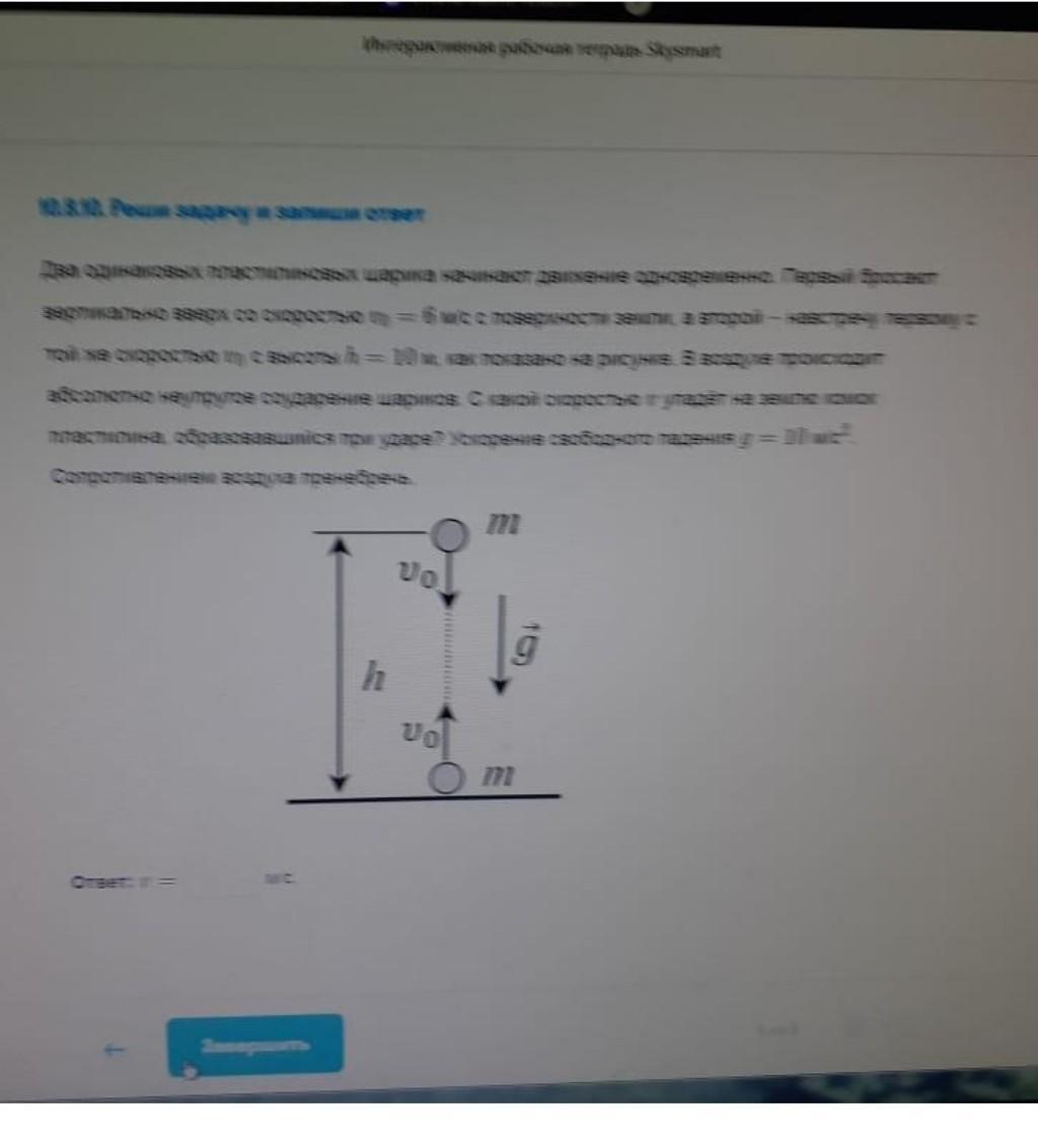 доска массой 1 кг покоится на гладкой горизонтальной поверхности стола. Комок сырой глины массой 0,5 кг бросают с некотороц высоты под углом 30 к горизонту, сообща ему начальную скорость v =6(м/с). Комок падает на доску и прилипает к ней. С какой скоростью v доска будет двигаться по столу, после попадания на неё глиняногл комка? Результат в м/с и округли до трех значащих цифр