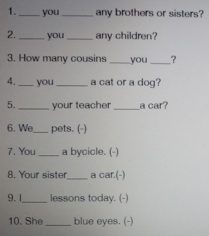 Вставить<<have got/has got, have't got, hasn't got>>(там где минус в скобках, это отрицательная форма)
