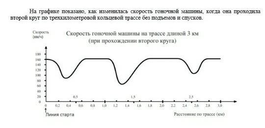 В каком месте трассы скорость машины была наименьшей при прохождении второго круга? *