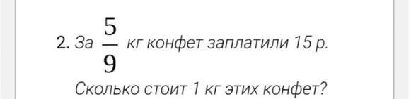 Для того, чтобы найти целое, если известна часть, надо значение части (15 в данном случае) разделить на эту часть (5/9):