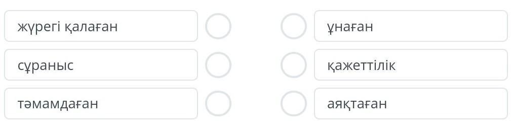 Мәтіннен алынған сөздерге мәндес сөздерді тауып сәйкестендір.