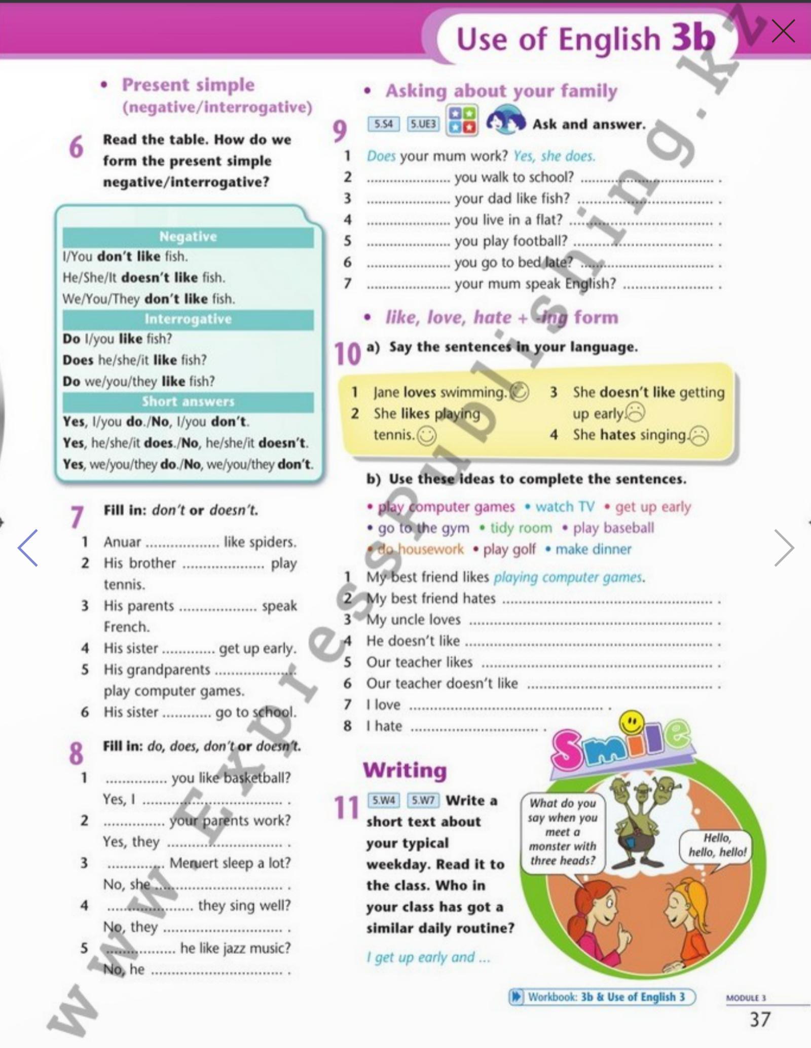 3. Does your dad like fish? Yes, he does