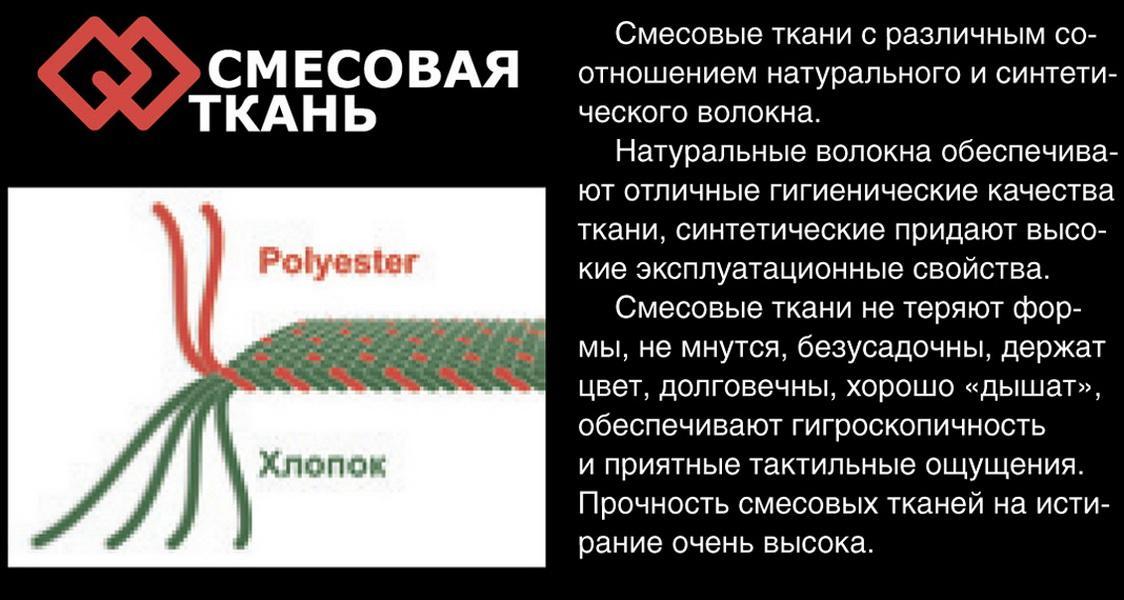 Смесовыми тканями называют ткани, при производстве которых было использовано волокно нескольких видов...