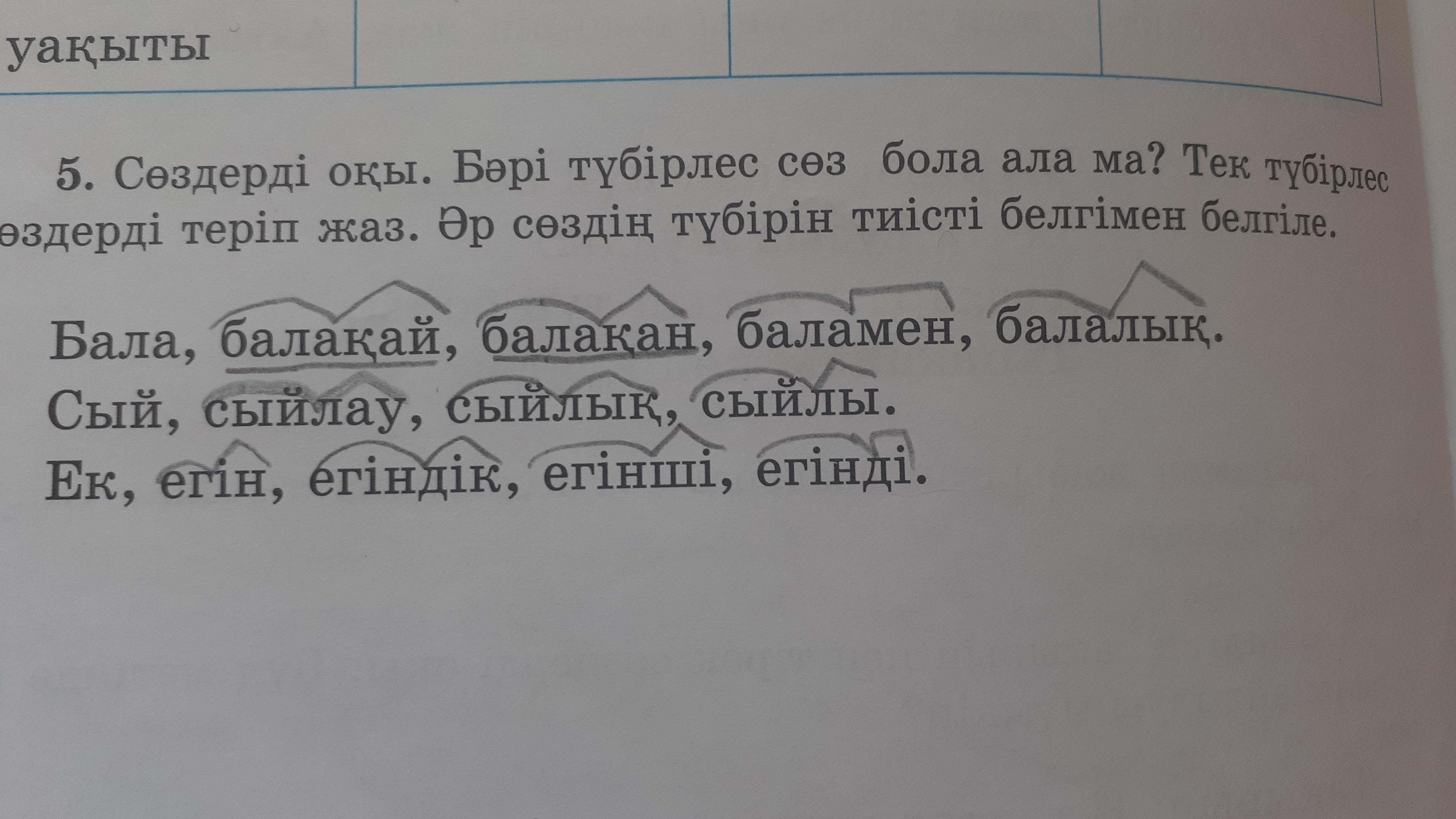 5. Сөздерді оқы. Бәрі түбірлес сөз бола ала ма? Тек түбірлес