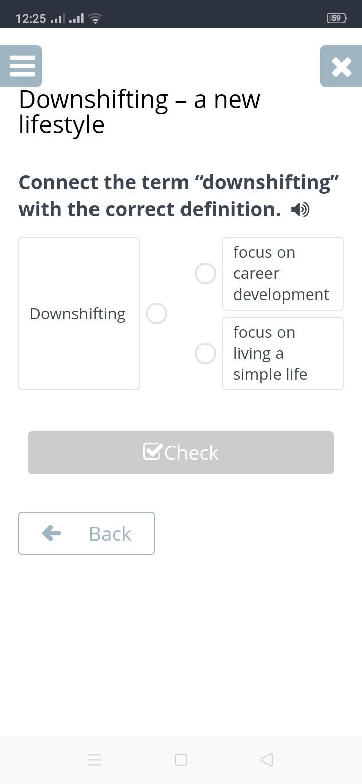 Connect the term “downshifting” with the correct definition.