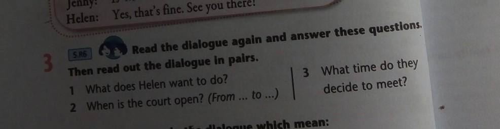 Read the dialogue again and answer these questions. Then read out the dialogue in pairs. Помогите пожалуйста