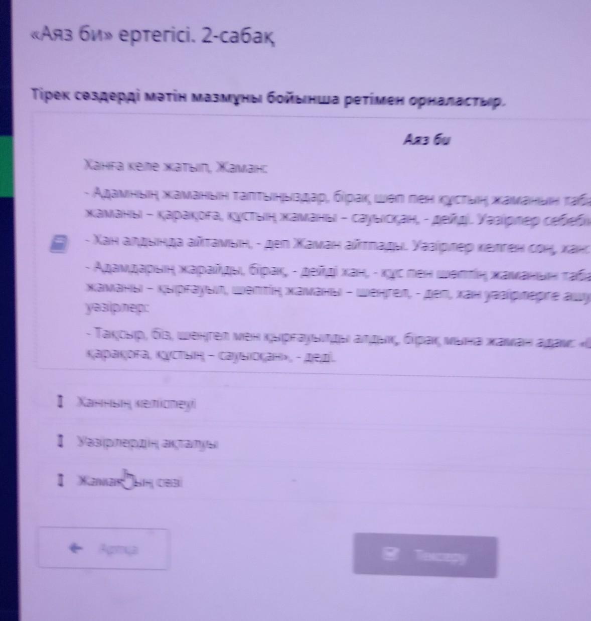 Тірек сөздерді мәтін мазмұны бойынша ретімен орналастыр.