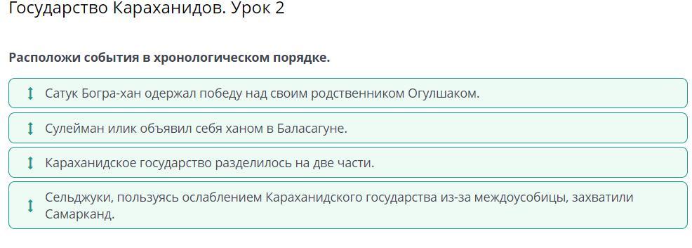 Государство Караханидов. Урок 2 Расположи события в хронологическом порядке.