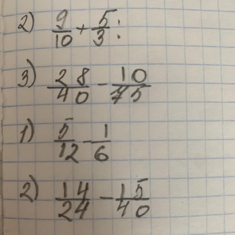 1)1/12 2) 2 целых 17/30 3) 17/30 1)1/4 2)5/24
