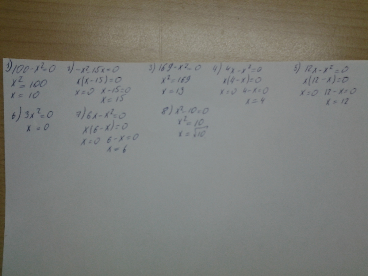 1) 100-x²=0 2) -x²-15x=0 3) 169-x²=0