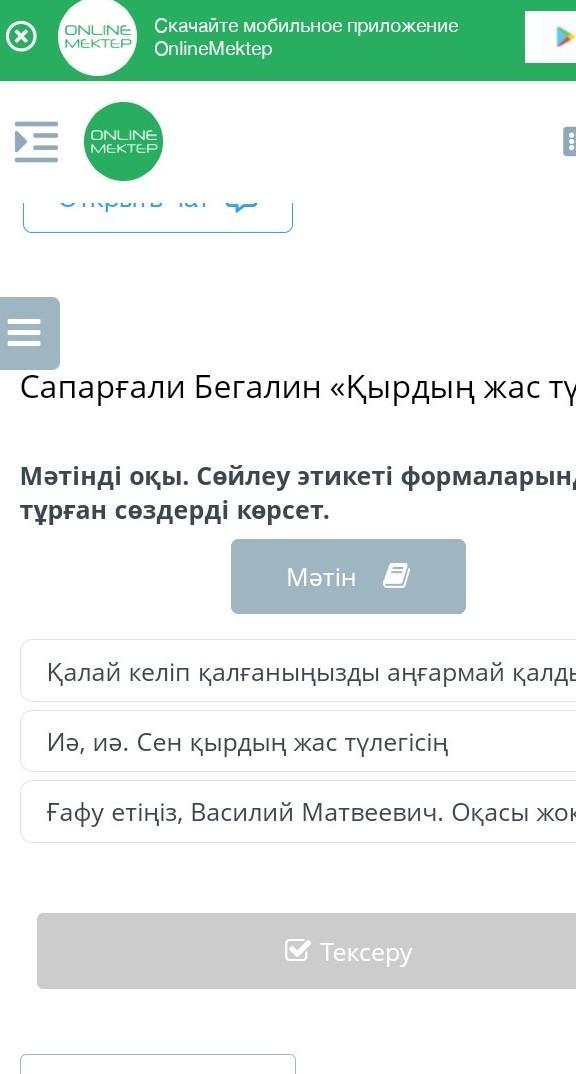 Мәтінді оқы. Сөйлеу этикеті формаларында тұрған сөздерді көрсет.