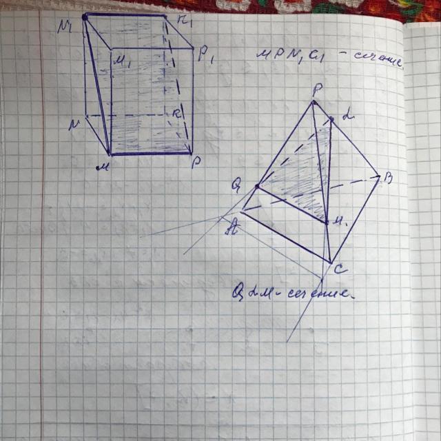 1. Построить сечение параллелепипеда MNKPM1N1K1P1, проходящее через ребро MP и вершину N1