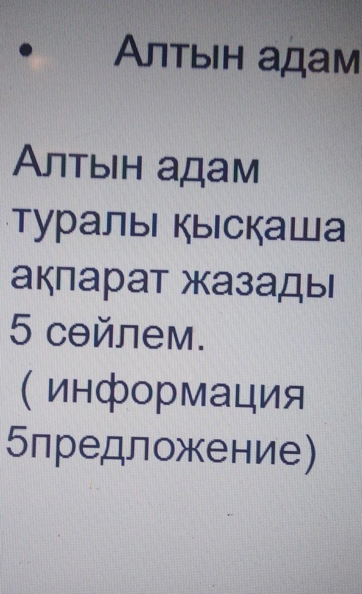 Объяснение:Алтын адам сонау жылдардан аңыз болып келкжатқан адам алтын адамды атымен сәт атаған алтын адам тек 1 адам емес алтын адамның жетінші сі де табылып жатыр алтын адам алтын бұйымдардан киініп жүрген уәзір алтын адамдардың табылған дарынын барлығы музейде жатыр