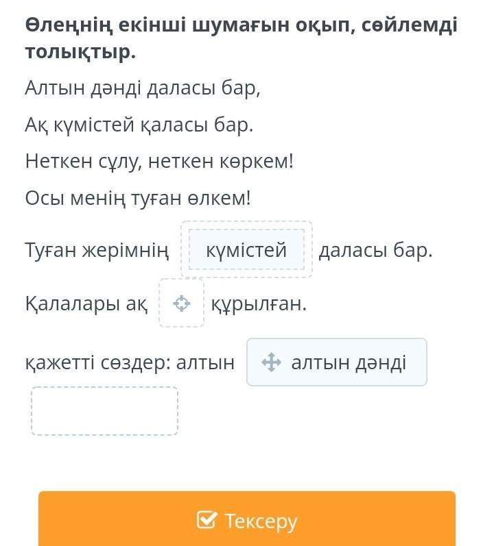 Өлеңнің екінші шумағын оқып, сөйлемді толықтыр.