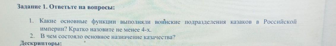 1. Какие основные функции выполнялн воинские подразделения казаков в Российской
