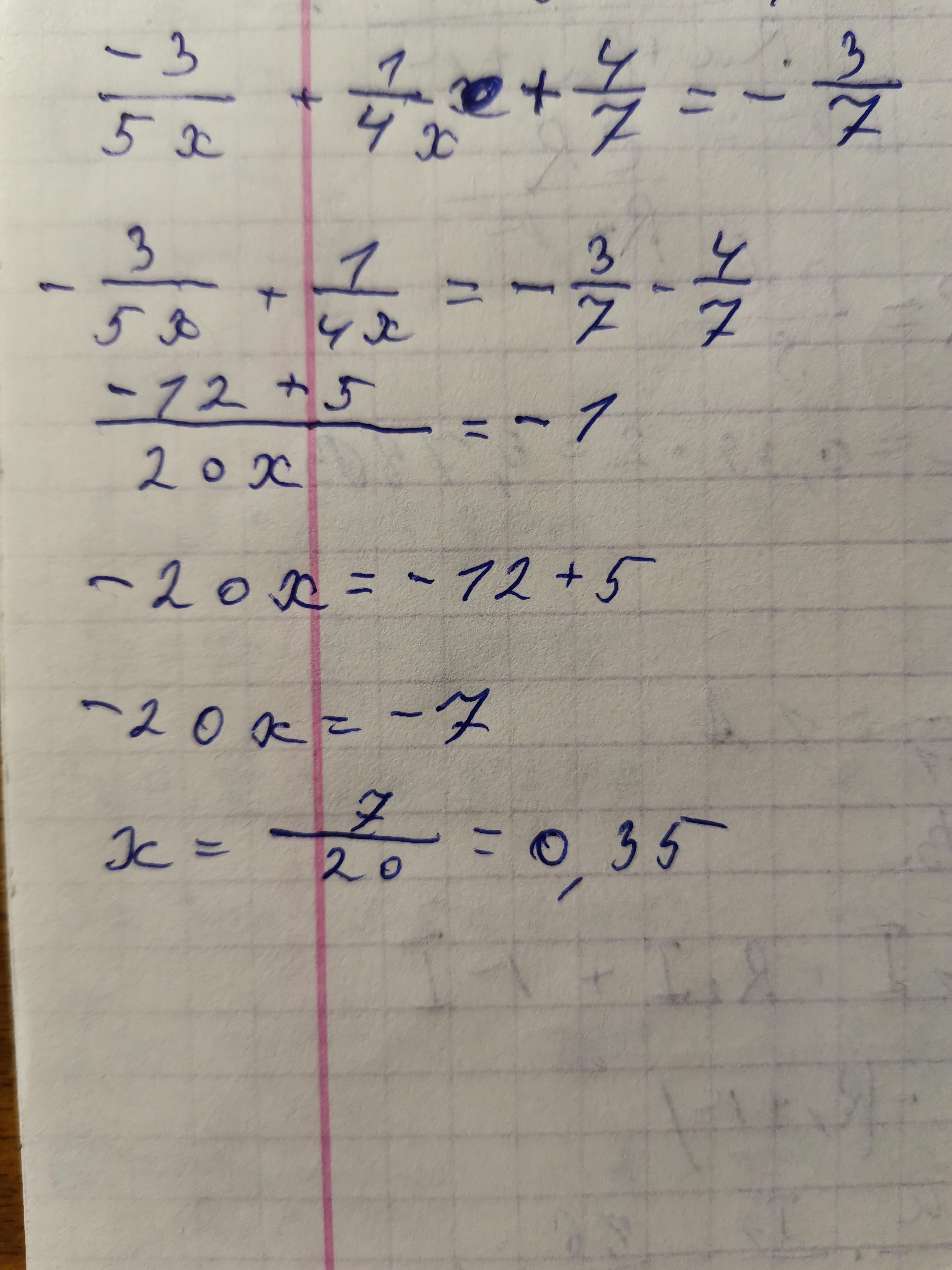 это будет x=20/7 вот это правильно