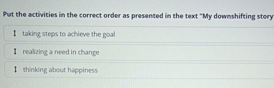 Put the activities in the correct order as presented in the text “My downshifting story"