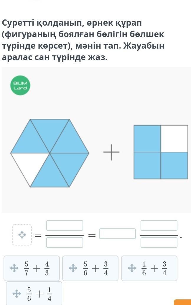 1 суретте 6 бөліктің 5 бөлігі боялған 5/6