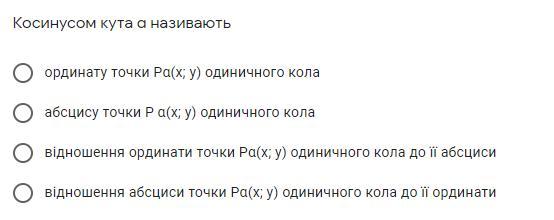 косинус кута α є абциса точки Рα(х;у) одиничного кола.
