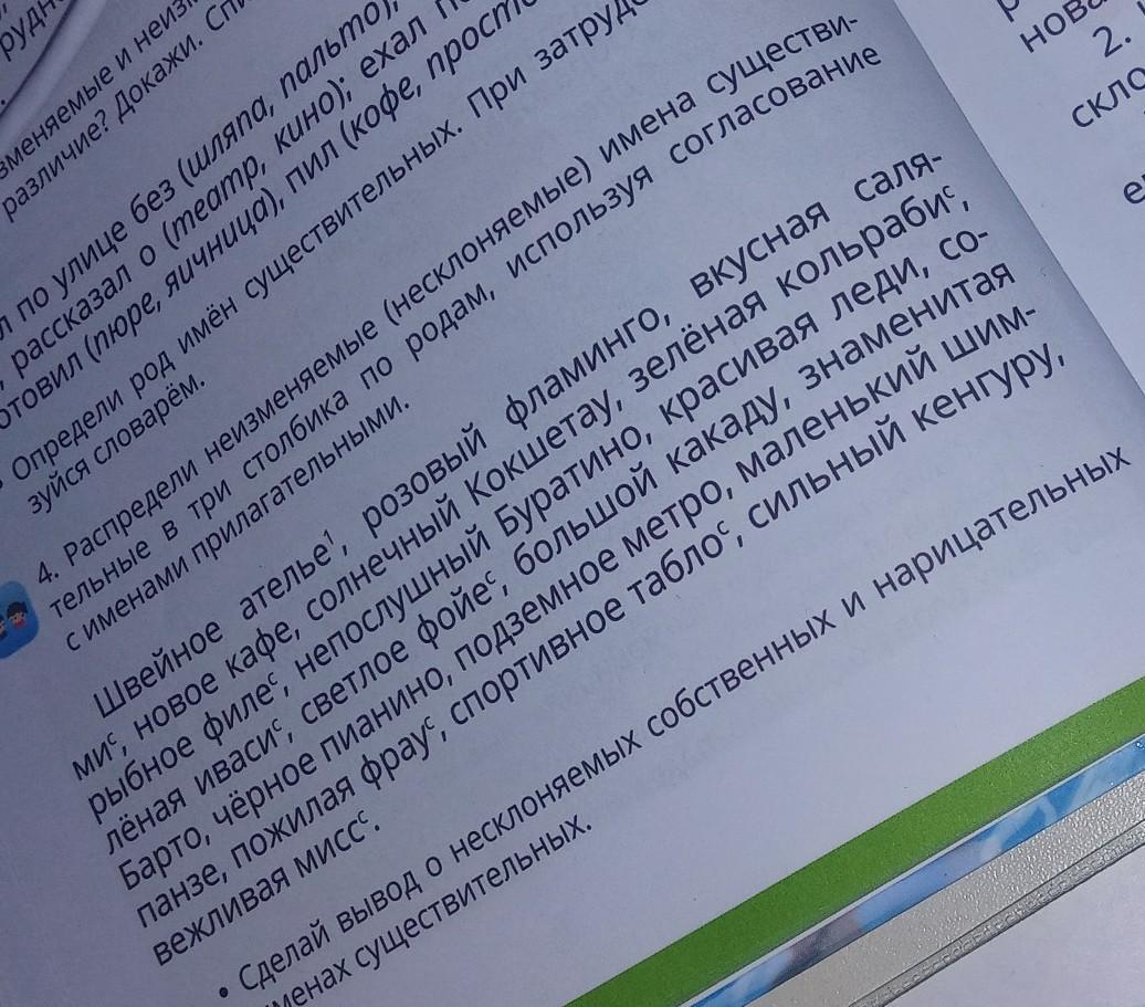 номер 4 распределение изменяемой несклоняемые имена существительные в три столбика по родам используя согласования с именами прилагательными