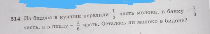 1/3 + 1/6 - это тоже половина бидона (0,5 )