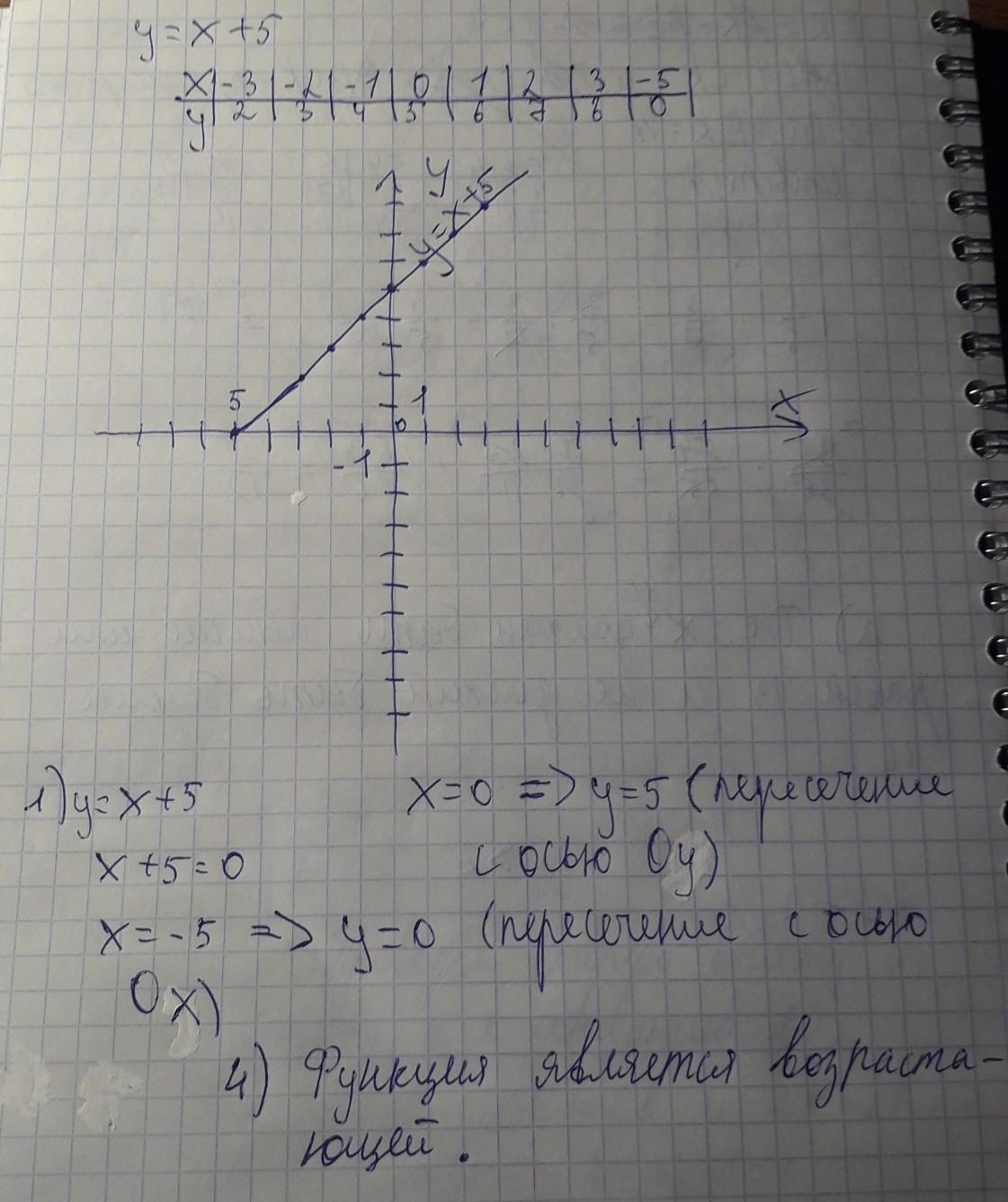 2) x = -2 => y = 3; x = -1 => y = 4; x = 0 => y = 5; x = 1 => y = 6.