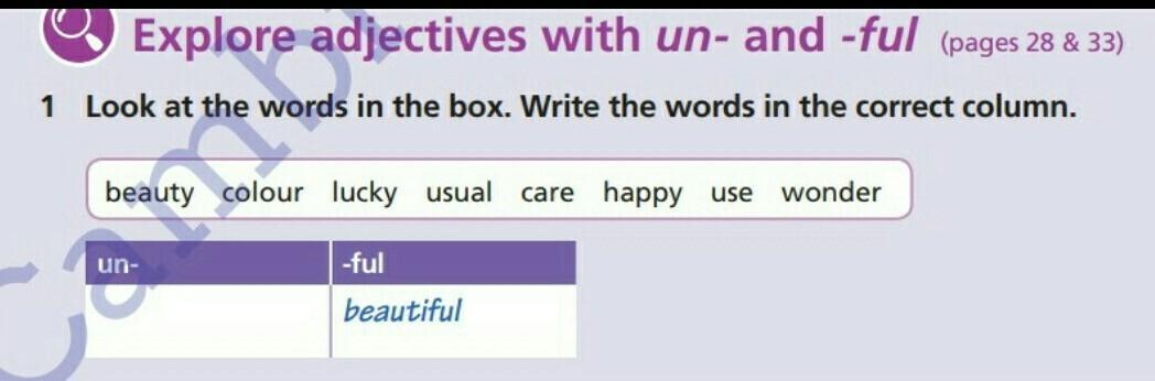 beautiful, colourful, unlucky, unusual, careful, unhappy, useful, wonderful