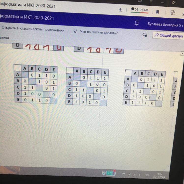 Построить граф к этим трём таблицам, используя матрицу смежности. Срочно пожалуйста!!!