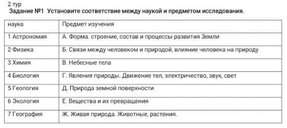 Задание №1 Установите соответствие между наукой и предметом исследования.