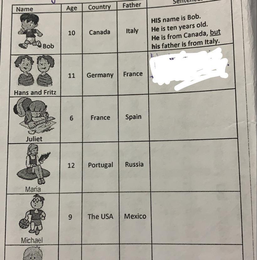 4. His name is Michael. He is nine years old. He is from USA, but his father is from Mexico.