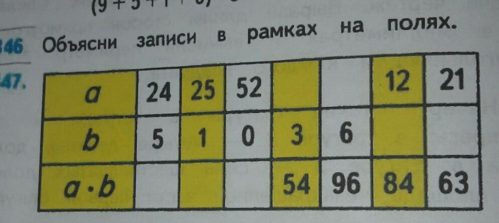 Ответ:24×5=120,25×1=25,52×0=0,18×3=54,16×6=96,12×7=84,21×3=63