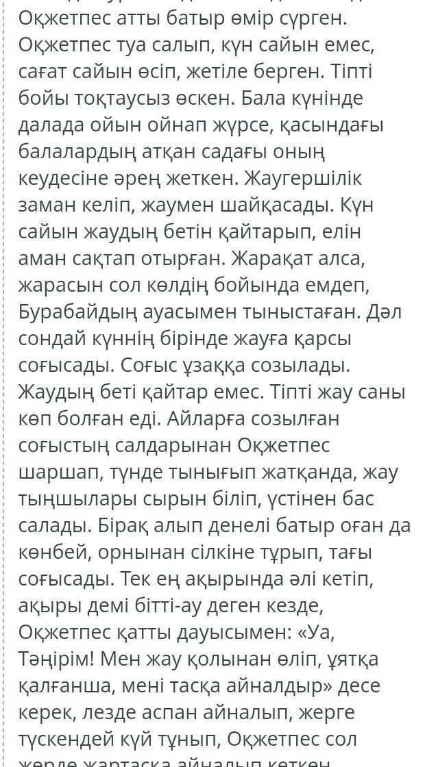 Мәтінді оқы. Оқжетпес шаршап, түнде тынығып жатқанда келген адамдарды көрсет.