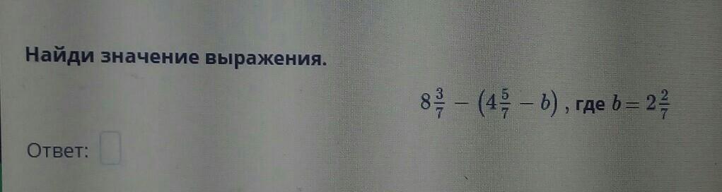Найди значение выражения 8 целых -( 4 целых 5/7-b ), где b = 2 целых 2/7