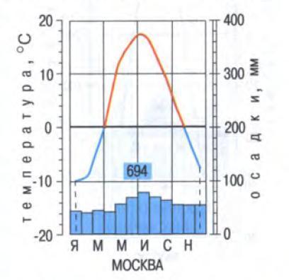 Внимательно рассмотрите климатограмму Москвы. Определите какое количество осадков выпадает в Москве в январе? *
