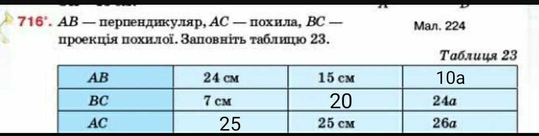 √((26а)²-(24а²))=√(676а²-576а²)=